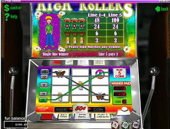 Rollers is a 3-reel, five pay line slot machine. It may be