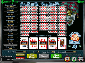 Each 1-hand Video Poker game can be played for $.05, $.25,